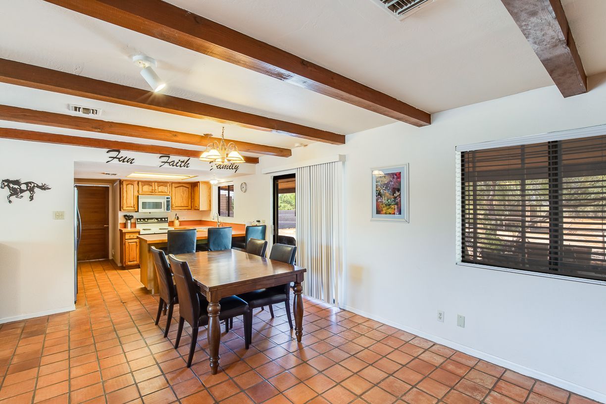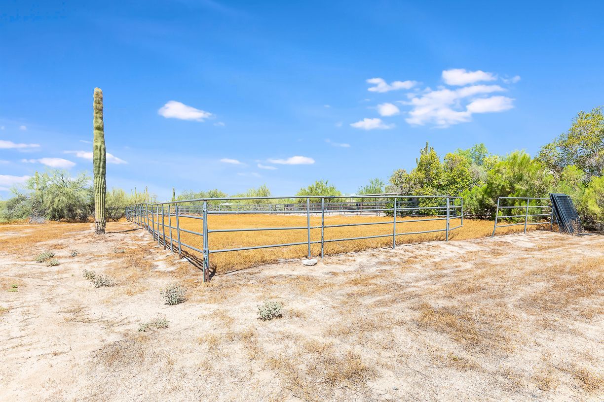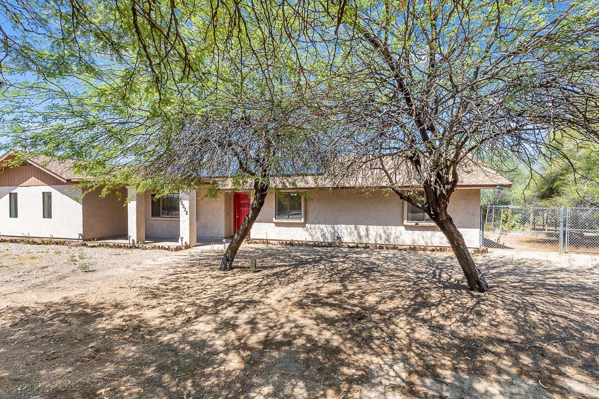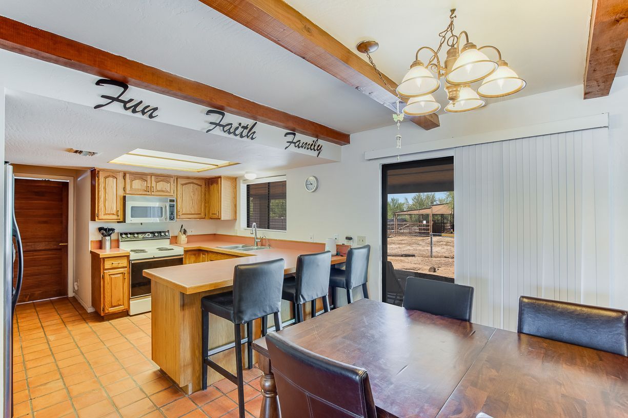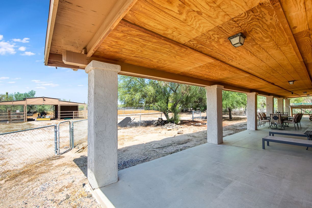 Excellent investment opportunity! This exceptional horse property sits on a 1.1-acre lot with PAVED ROAD access, offering spacious living and abundant privacy. The open great room features beautiful Saltillo tile, wood-beamed ceilings, and a charming wood-burning fireplace. The eat-in kitchen boasts a convenient breakfast bar, ample counter space, and a stainless steel fridge. The master suite includes a large closet and an en-suite bathroom with a walk-in shower. Benefit from extremely low energy bills with leased solar panels! The property also has a BRAND NEW roof with a 50-year warranty. The 2-car garage comes equipped with a full workbench. Outdoors, you'll find a huge extended covered patio, fenced yard, 4-stall barn, enclosed chicken coop, working shed with power and water supply, and MUCH more! Don’t miss this excellent investment opportunity to own a property with such incredible amenities and potential!