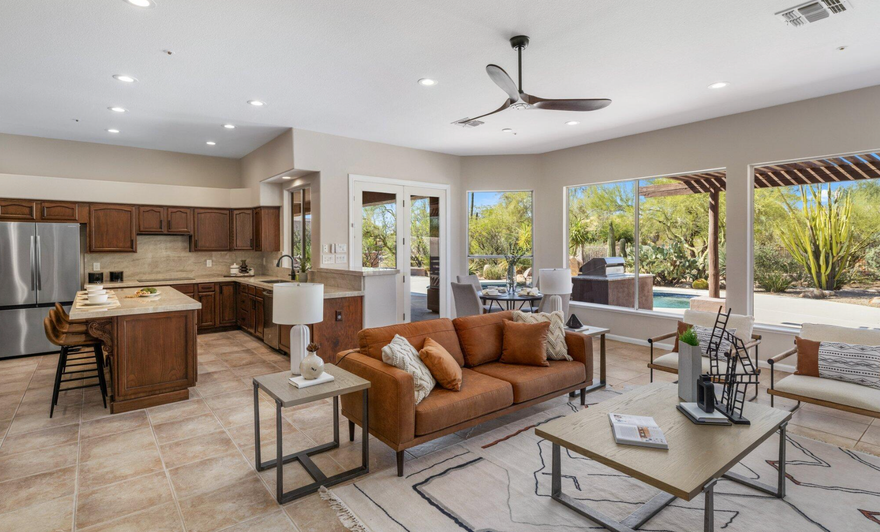 29178 N 108th Pl, Scottsdale, AZ 85262 $2,275,000 3 Beds| 4 Baths| 3,735 SqFt Enjoy resort-style living on the 14th hole of the prestigious Pinnacle Course in the guard-gated community of Candlewood at Troon North. This exquisite home showcases a stunning backyard oasis with a heated pool, spa, built-in BBQ, and an inviting outdoor fireplace, all framed by breathtaking golf course and Pinnacle Peak views. Inside, the open Great Room design highlights a chef’s kitchen equipped with a Dacor gas cooktop, double ovens, a spacious island, and granite countertops. The luxurious master suite features a cozy sitting area, dual vanities, and a relaxing jetted tub. With three bedrooms, three and a half baths, and a dedicated office, this home seamlessly blends sophistication with comfort. Additional highlights include a fireplace, surround sound system, plantation shutters, and a spacious three-car garage.