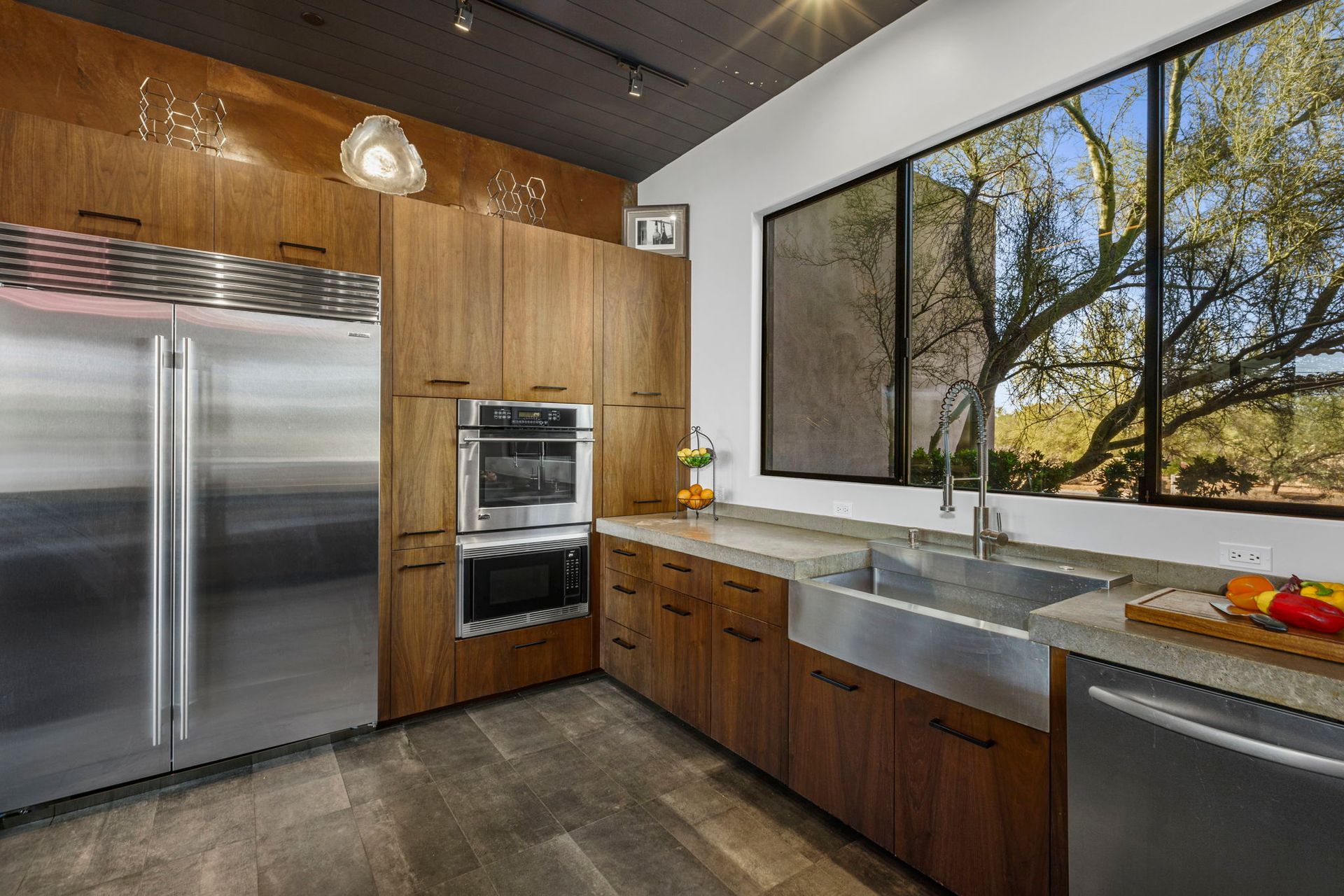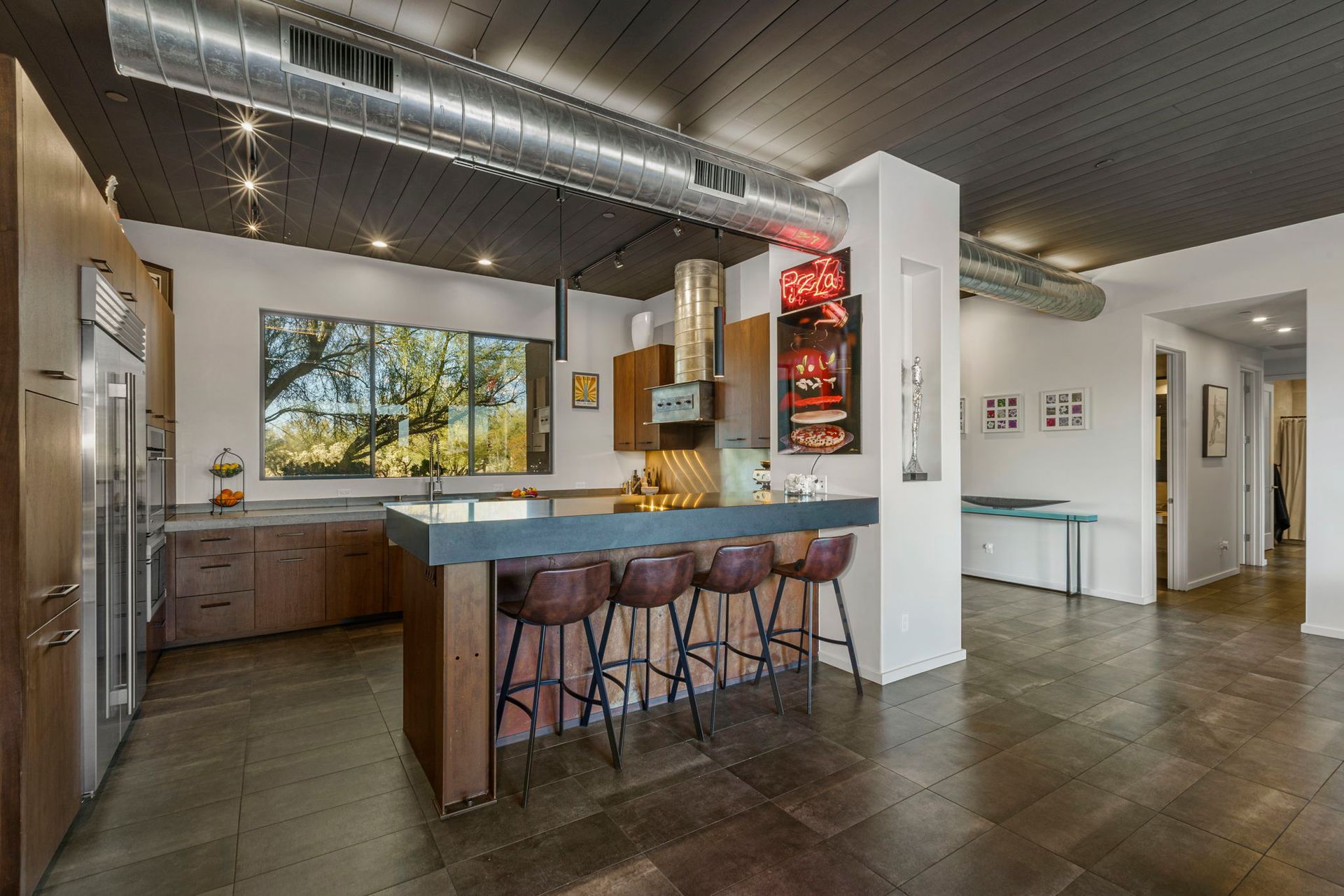 Separate from the main house, you'll find a casita with a one-car garage. This casita features one bedroom, one bathroom, a living area, a full kitchen, and its own laundry facilities in a closet.