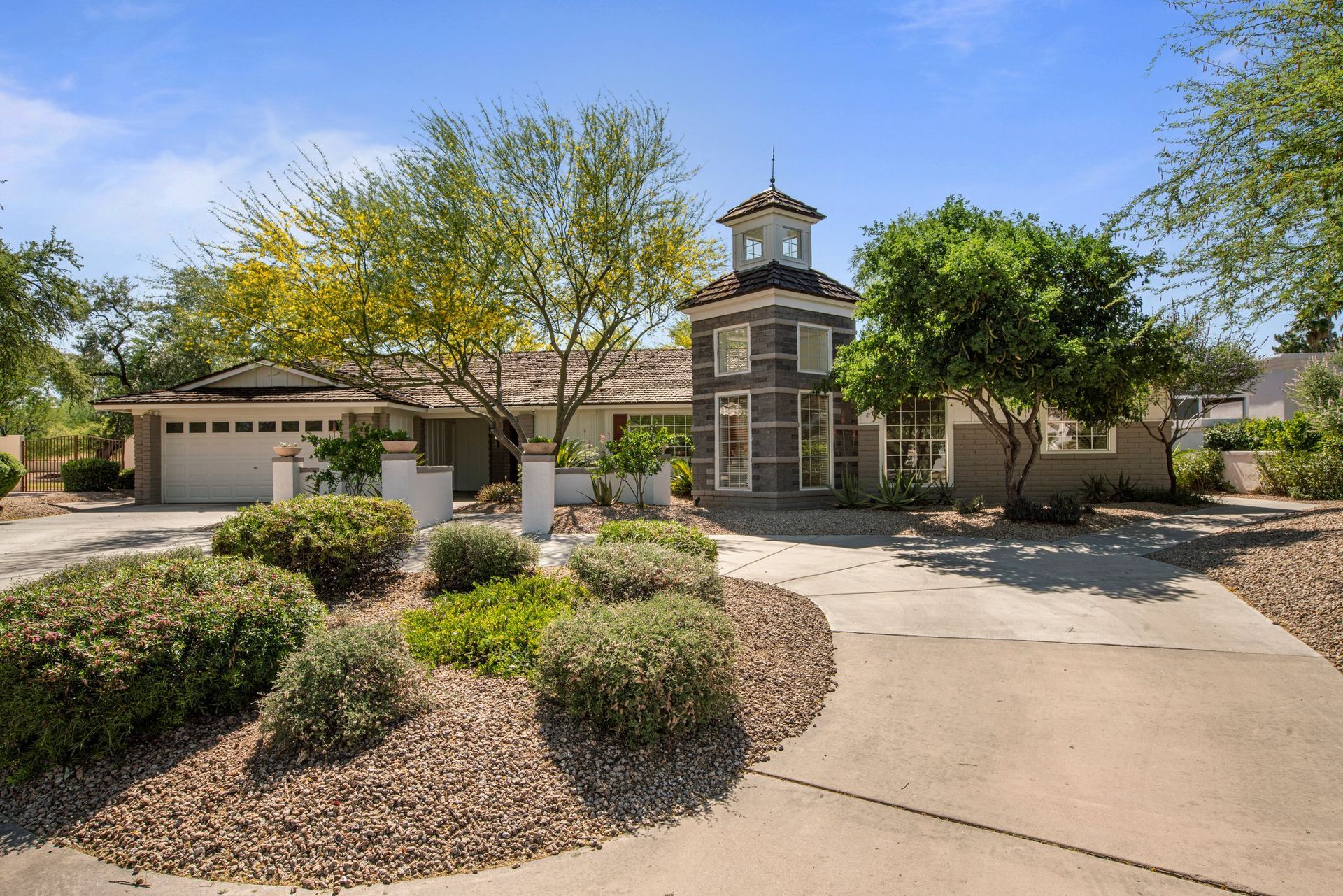 The spacious floor plan boasts generous-sized rooms and a sizable bonus room presents endless possibilities, ideal for transforming into a guest suite, or home office to meet your specific needs. Enjoy timeless stone and hardwood flooring throughout the home. Venture out back onto a large covered patio, with views of the sparkling pool & enchanting ramada. Best location near great dining, shops & transit.