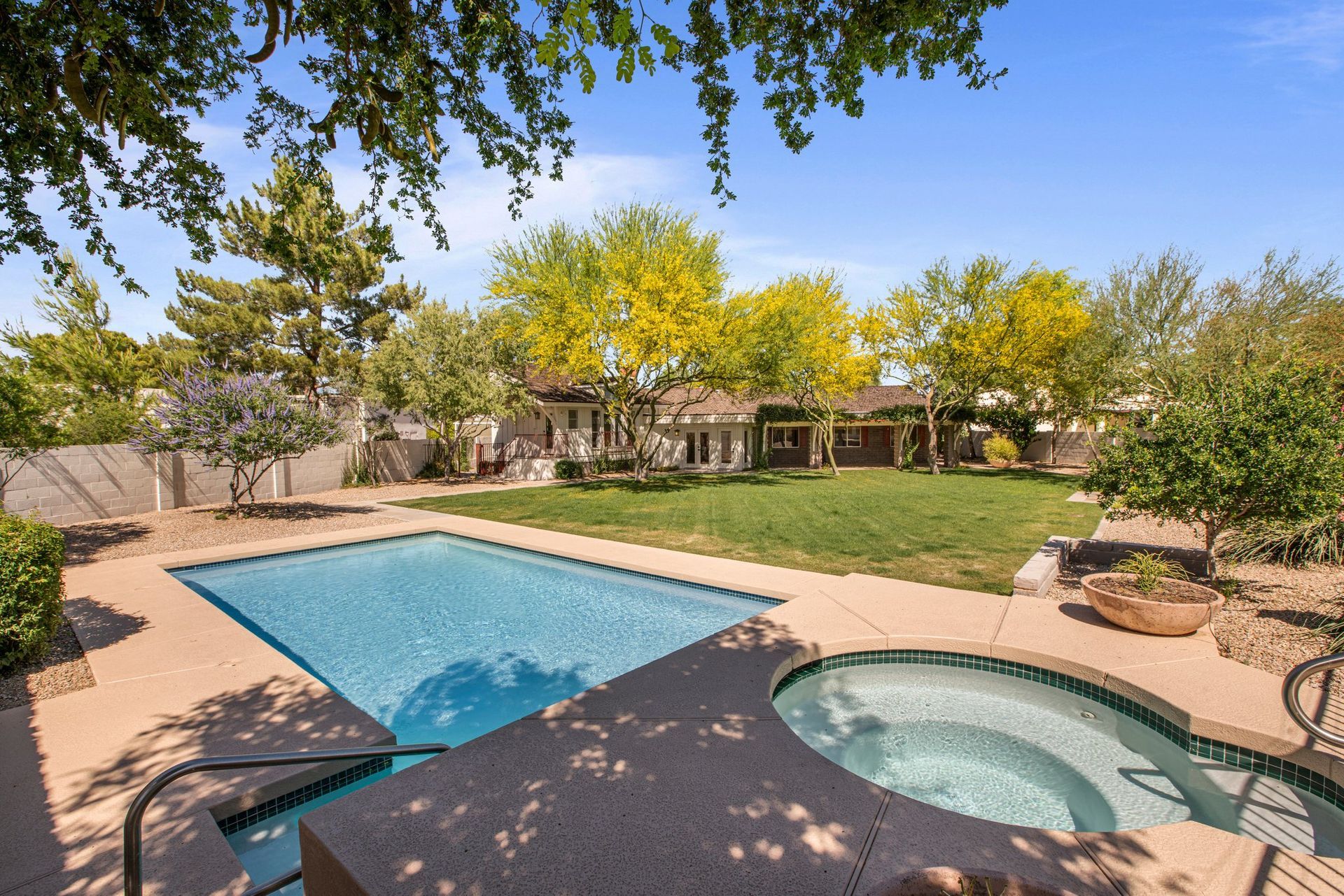 5926 E Hartford Ave, Scottsdale, AZ 85254 $2,499,000 5 Beds | 4 Baths | 3,910 sqft Step into this beautifully updated farmhouse-style home located in the highly desirable 85254 area—just minutes from premier Scottsdale shopping and dining. From 2020 to 2024, major exterior enhancements include smooth stucco, a paver driveway, energy-efficient solar panels, and a stunning saltwater pool and spa added in 2022. Inside, you’ll find vaulted ceilings with exposed wood beams, custom built-ins, and a bright, open floorplan. The chef’s kitchen is a showstopper with quartz countertops, a stylish tile backsplash, a large island with a breakfast bar, and a spacious walk-in pantry. The luxurious primary suite features private backyard access, a walk-in closet, soaking tub, dual vanities, and an oversized shower. A redesigned laundry/mudroom offers added function with quartz counters and built-in storage. Designed for both entertaining and everyday living, this exceptional home perfectly balances modern upgrades, comfort, and timeless style in one of Scottsdale’s most sought-after communities.