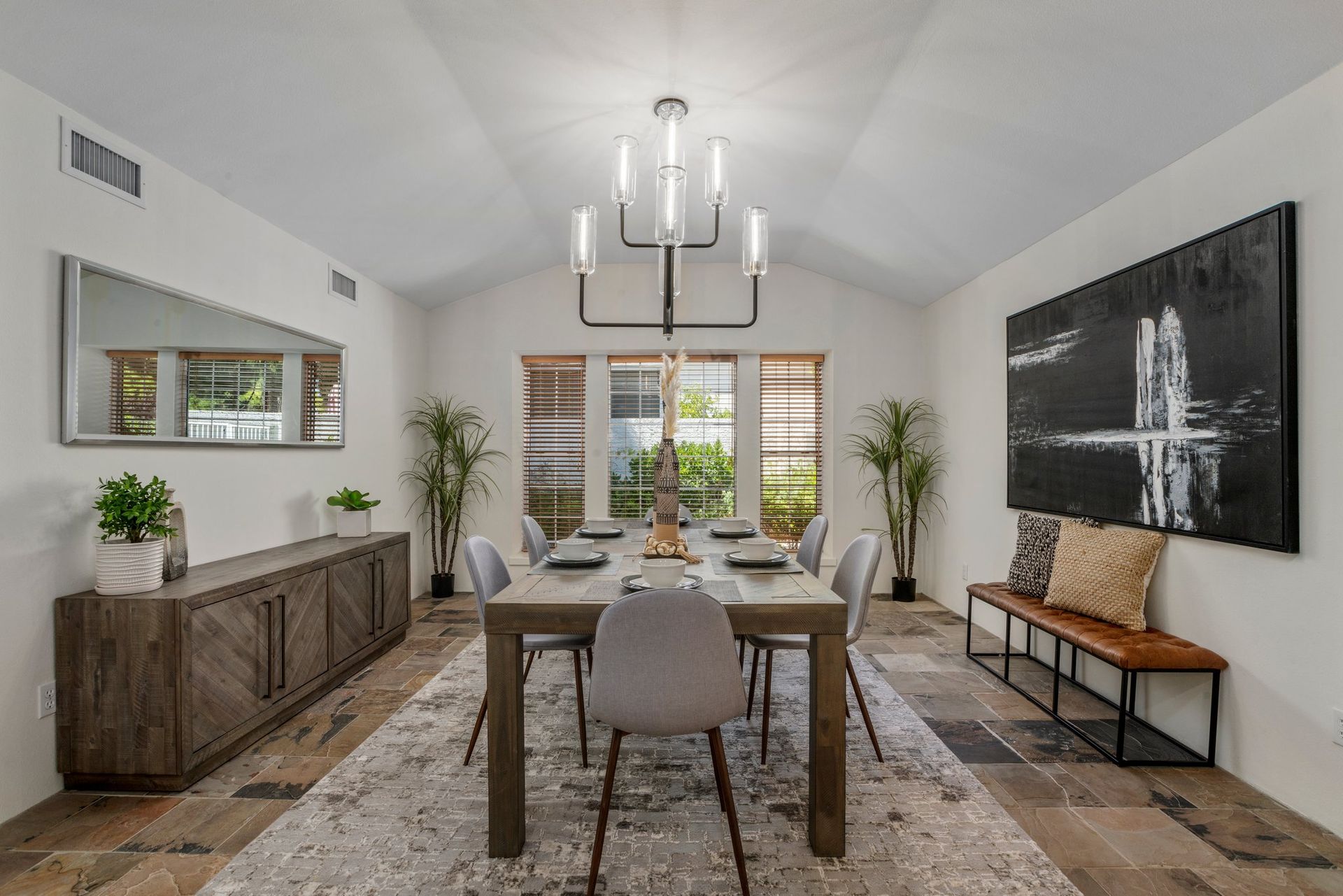 6701 E Riverdale St, Mesa, AZ 85215 3 bedrooms | 2 bathrooms | 1,317 sqft LISTING PRICE $445,000 Step into your ideal home in a gated community, completely remodeled with today's top design trends. This single-level gem features an open layout with vaulted ceilings and a show-stopping kitchen complete with quartz countertops, a spacious working island, and brand-new appliances. The split master suite offers privacy and includes a walk-in closet and a beautifully updated bathroom. Throughout the home, you'll find new flooring, upgraded lighting, and fully renovated bathrooms. Conveniently located just 20 minutes from the airport, with nearby shopping and dining just minutes away, this home blends comfort, style, and unbeatable location.